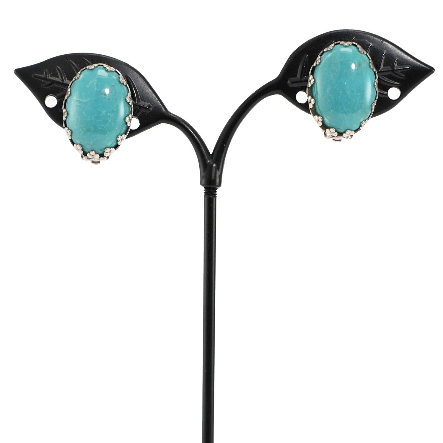 イヤリング 天然石 ターコイズ ブルー オーバル 124824