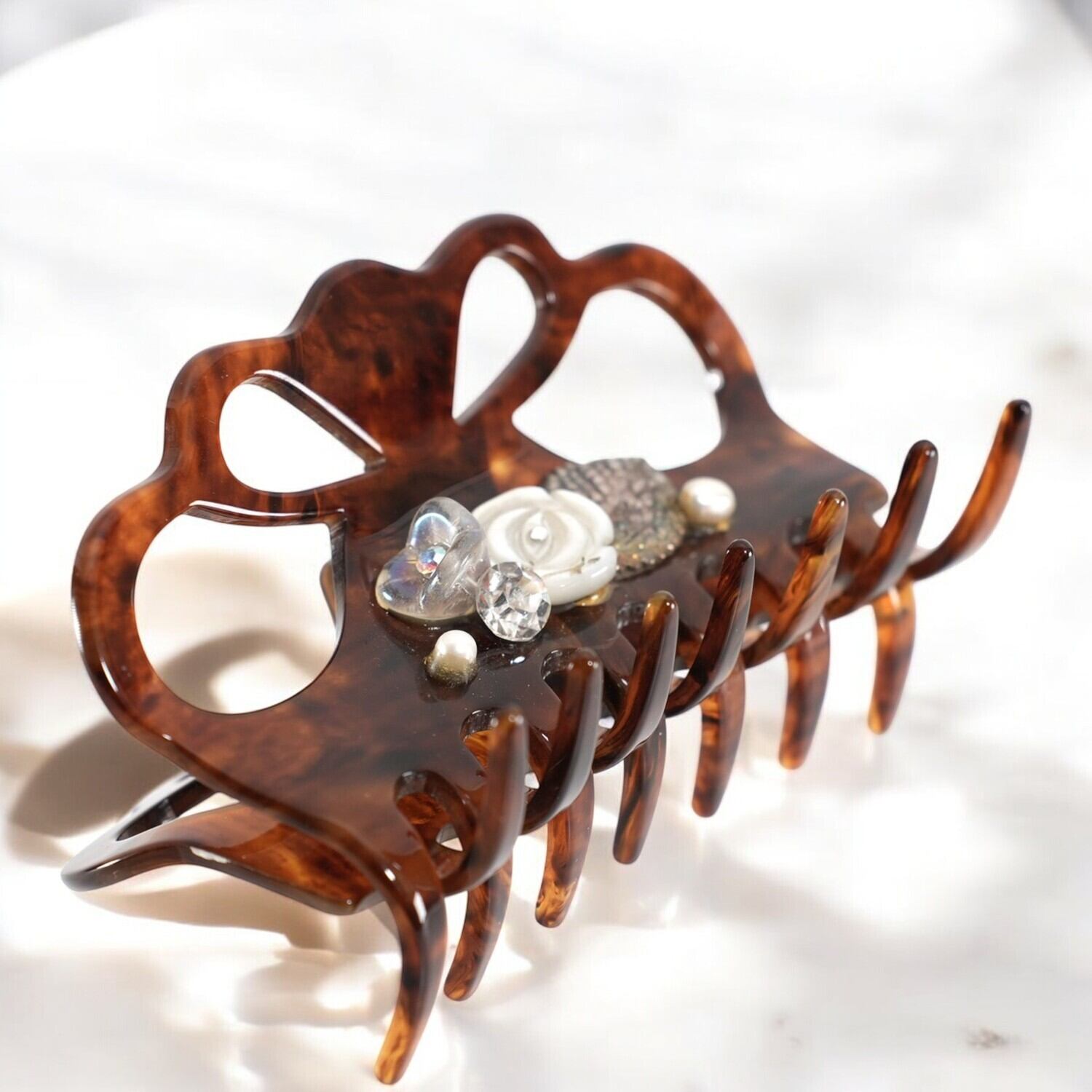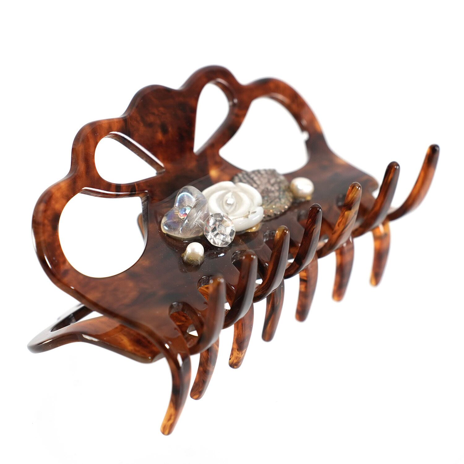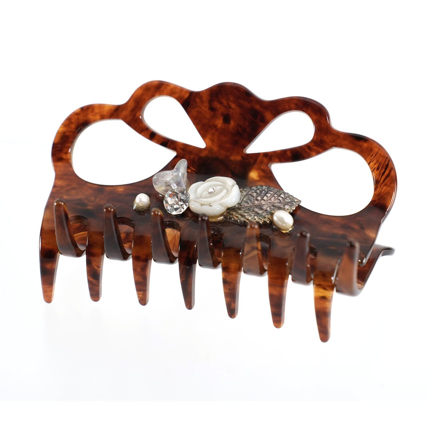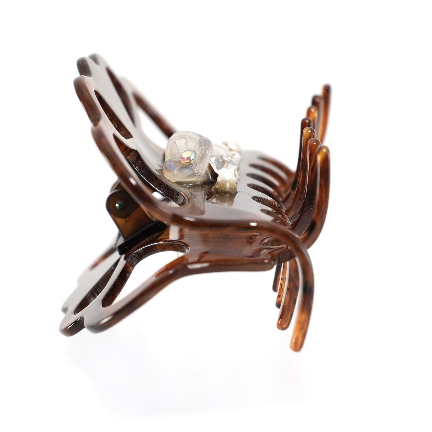 ヘアクリップ 白蝶貝 ボヘミアングラス ラインストーン 淡水パール ホワイト クリアカラー ブラウン 144771