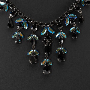 黒いラインストーンが贅沢に輝くネックレス。 ペアシェイプの石が繊細に揺れ、優雅な雰囲気を演出します。 丁寧な手仕事で仕上げられたこのネックレスは、チェコの熟練した職人たちによって生み出され、イマックデザイナーの感性が光るオリジナルデザインです。 デイリーのおめかしコーディネートから、パーティーなどの特別なイベントまで、さまざまなシーンで活躍します。