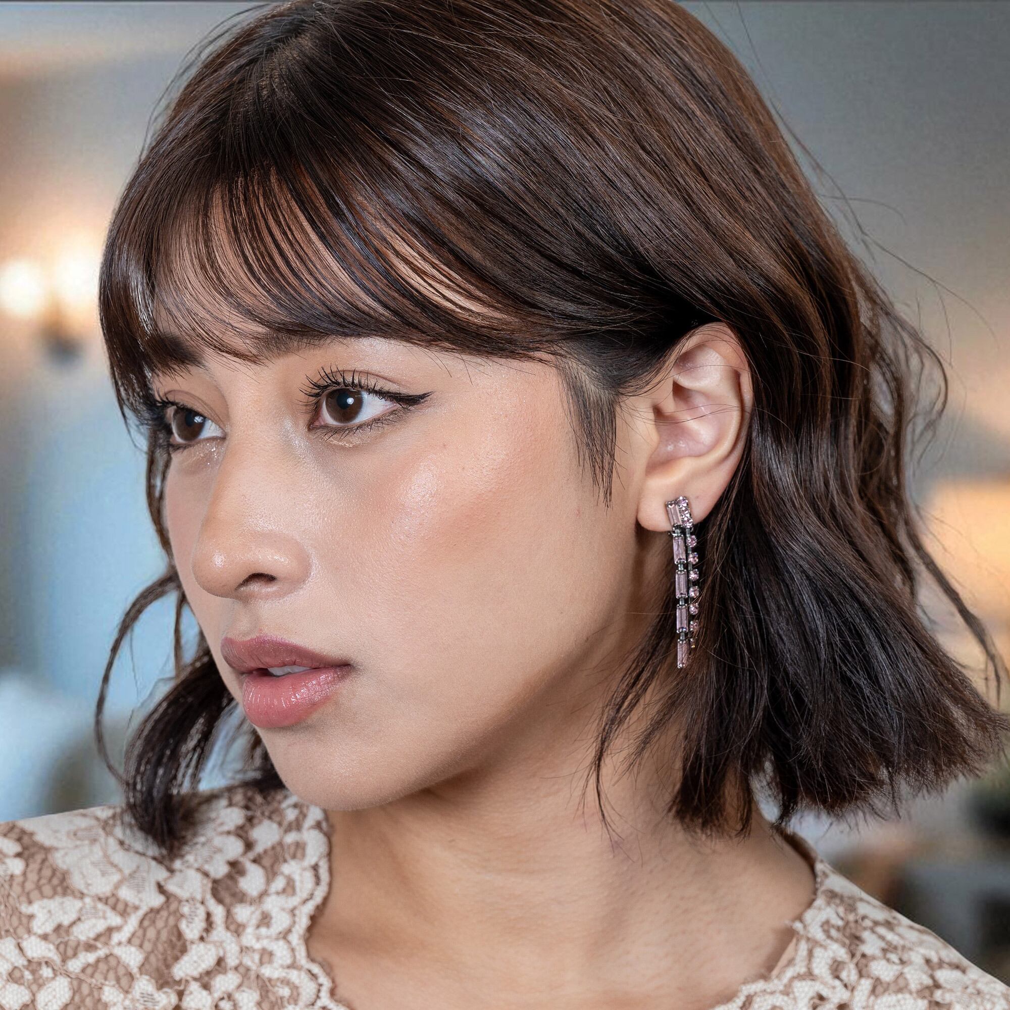 【このようなキーワードでお探しの方におすすめです】 耳飾り 紫 長方形 四角 ジオメトリック 幾何 揺れる ビジュー 光る きらきら おしゃれ プレゼント 人気 ピンク レディース 観劇 母の日 クリスマス 結婚式 会食 ブランド エレガント 高級感 アンティーク風