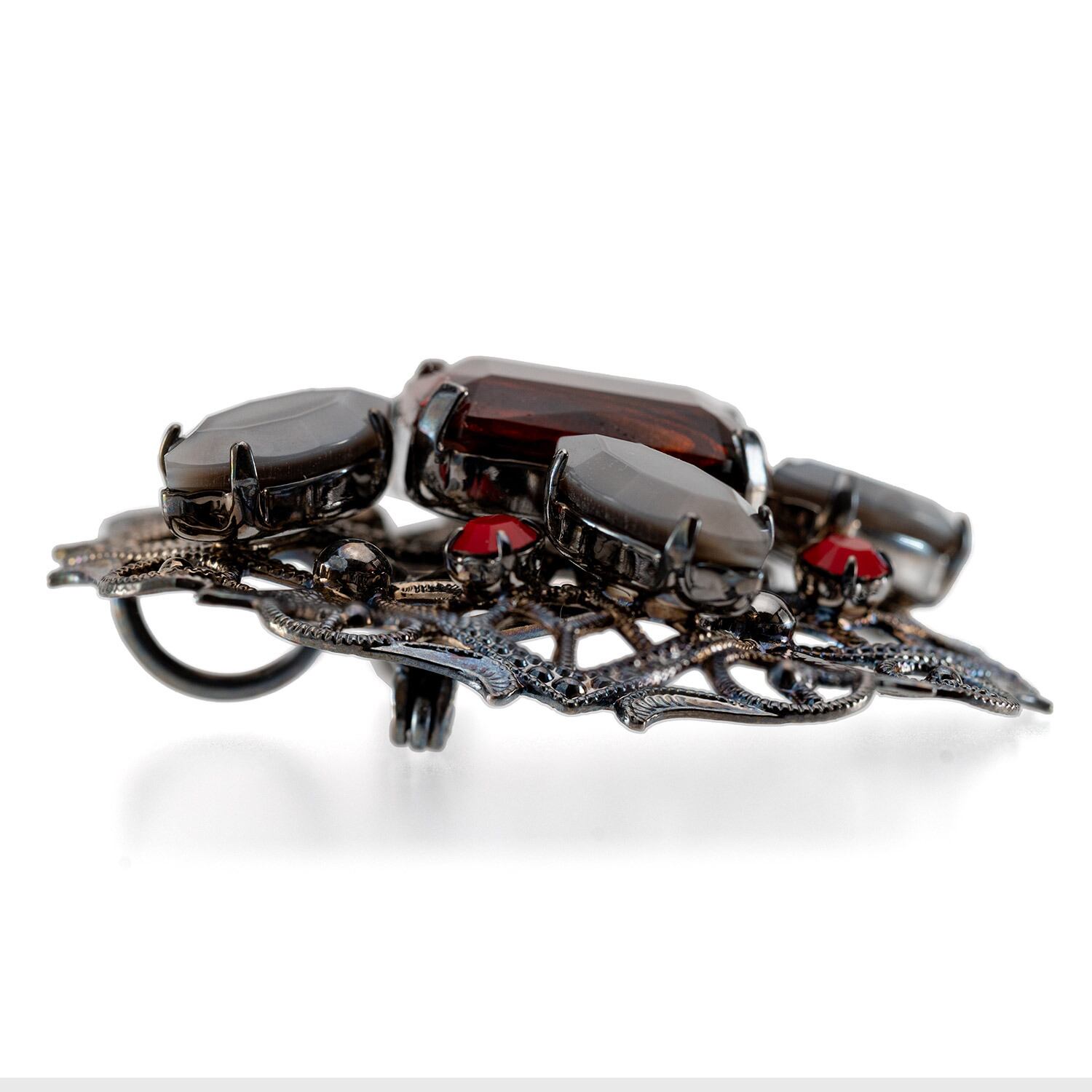 ブローチ ボヘミアングラス レッド グレー レース ペンダント 2WAY 143068 【イマックジュエリー公式】