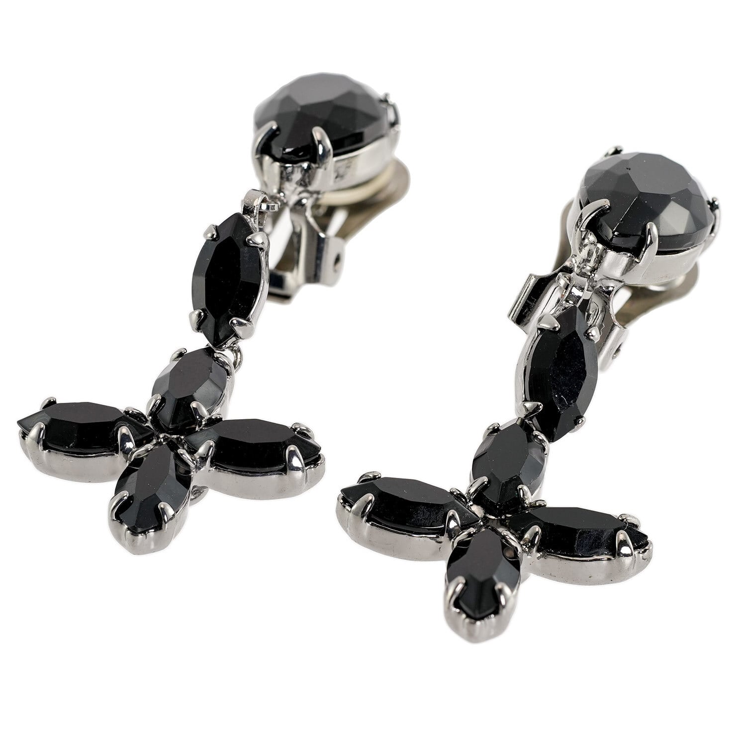 イヤリング ラインストーンブラック ハンギング フラワー er098548 【イマックジュエリー公式】