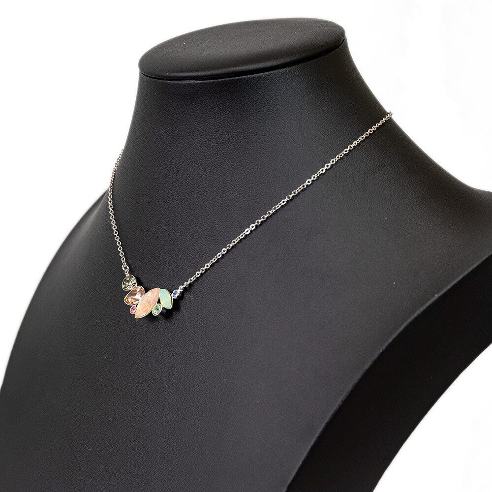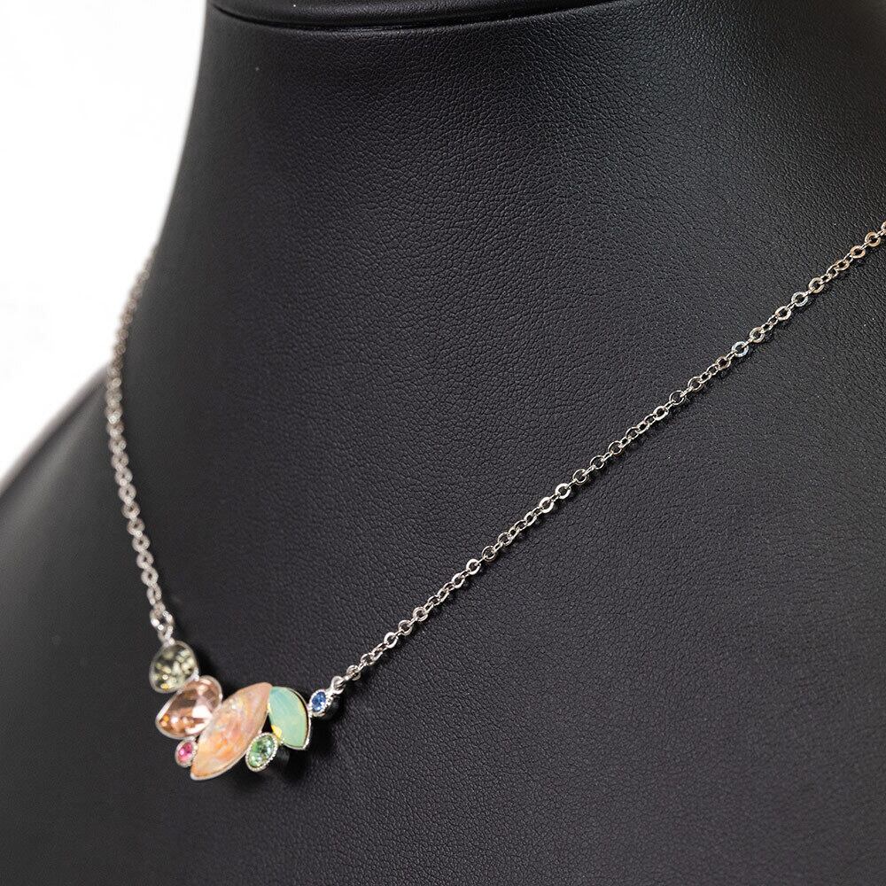 上質なボヘミアングラスとスワロフスキークリスタルがきらめくネックレス。 チェコの工房で作られるハンドメイドのボヘミアングラスが美しいカラーを表現します。 アクセサリーの伝統を受け継ぐヨーロッパの職人による丁寧なハンドメイド。 優しいパステルカラーのストーンを組み合わせ、大人の上品な華やかさを演出します。 おめかしやドレスアップにふさわしいクオリティです。