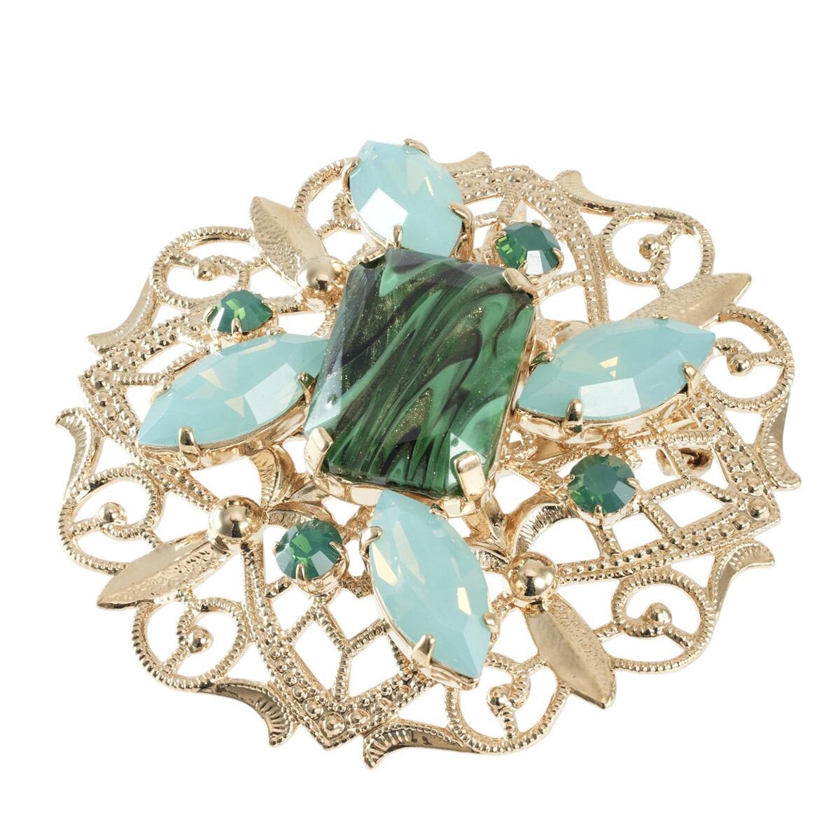 ブローチ ボヘミアングラス ラインストーン グリーン ゴールド 2WAY ペンダント br143069