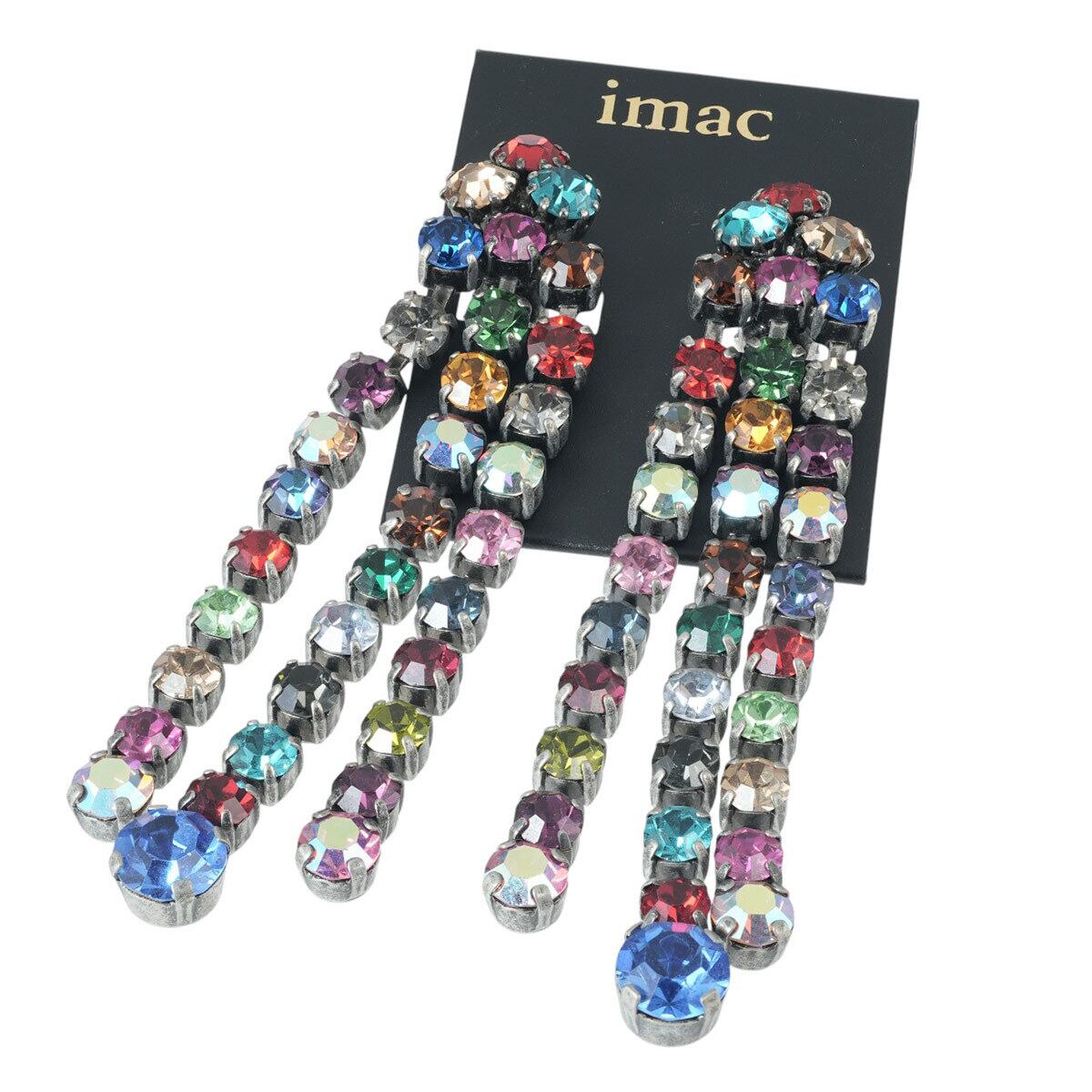 イヤリング ラインストーン レッド グリーン ブルー ブラウン ピンク ロング er123618