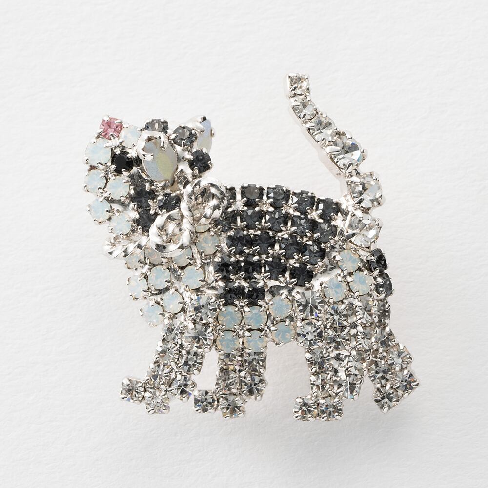 アクセサリー バッジ ラインストーン ブラック ホワイト 猫 140358 スワロフスキー プレゼント アンティーク風 軽量 軽い