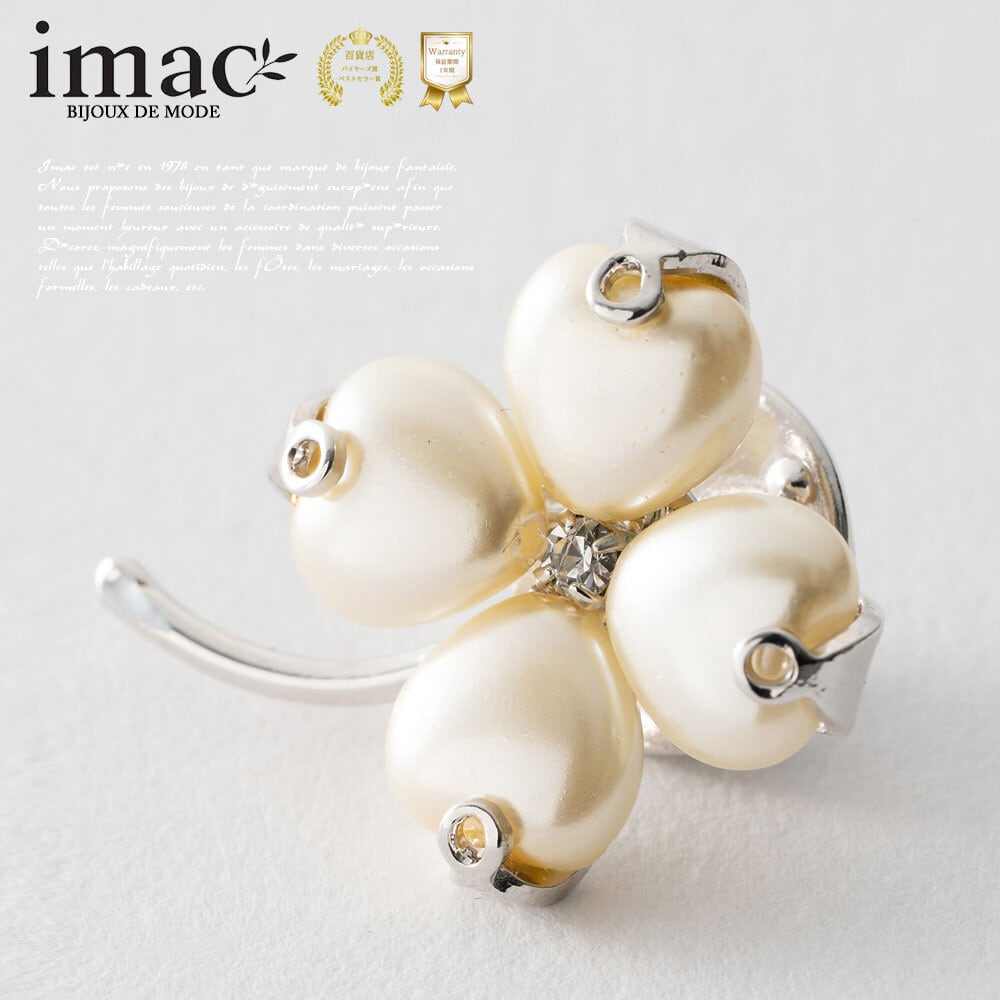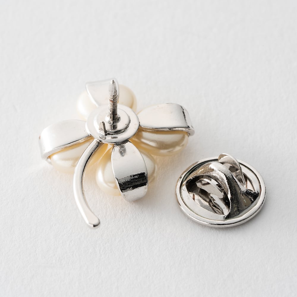 アクセサリー バッジ パール クローバー ホワイト 144421 四つ葉のクローバー プレゼント アンティーク風 軽量 軽い