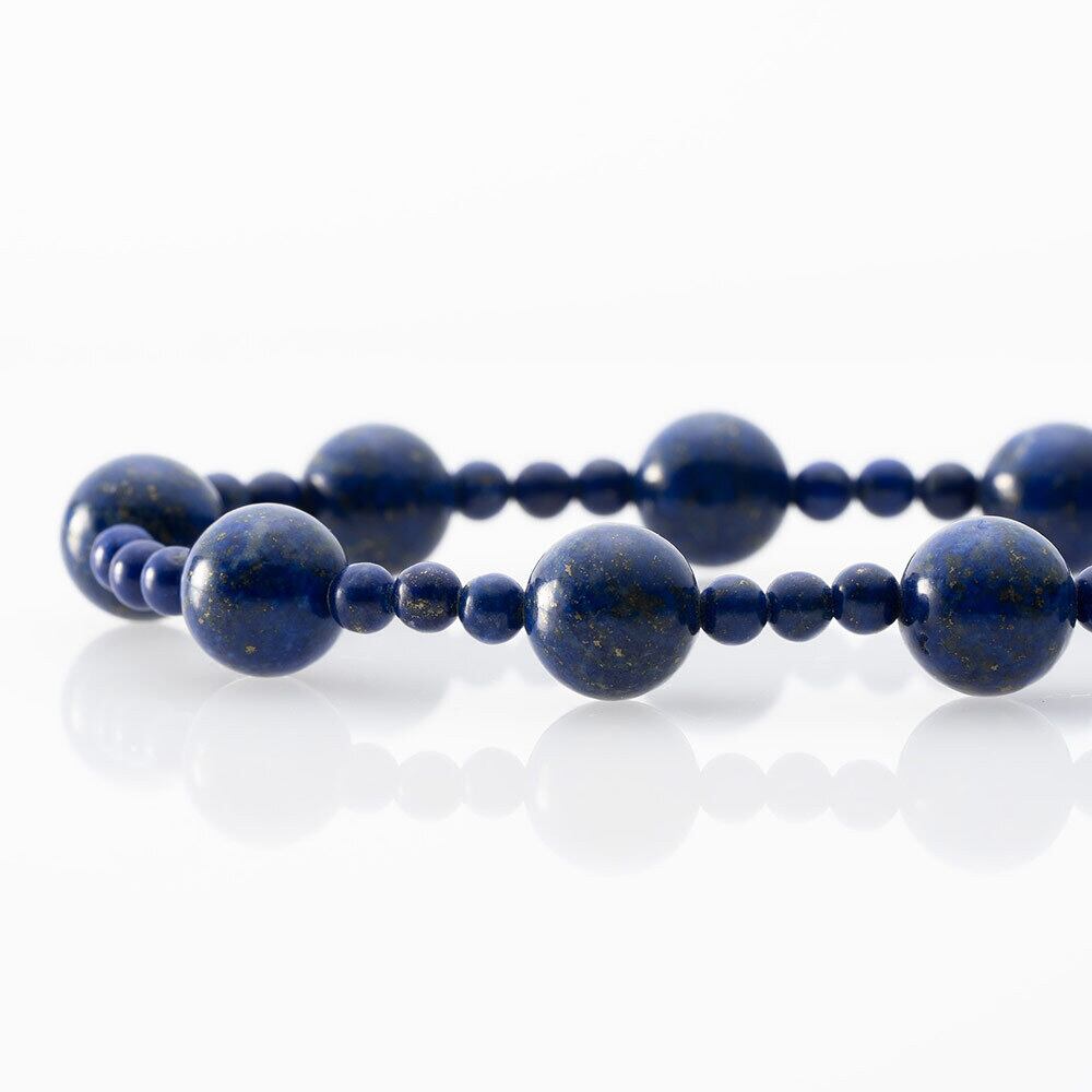 大粒のラピスラズリがデコルテを上品に彩ります。