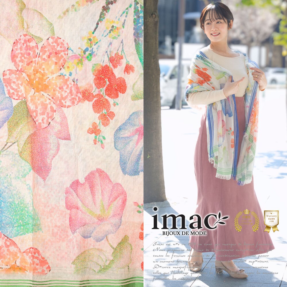 スカーフ コットン シルク ブルー グリーン フラワー 150134 レディース 大判 長方形 柄 結婚式 パーティー 白 赤 青 花 【イマック 公式】