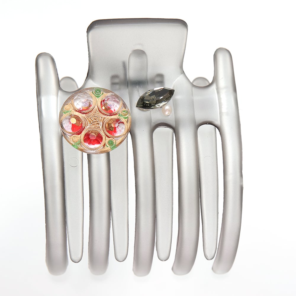 ボヘミアングラスのカラーハーモニーが美しいクリップ「スターリリー」。 赤を基調としたマルチカラーのボヘミアングラスが華やかな印象です。 アクセサリーの伝統を受け継ぐベテラン職人による丁寧なハンドメイド。 ボヘミアングラスが髪に映え、デイリーに活躍するアイテムです。 洋装にも和装にも合わせやすく、着けるシーンを選びません。