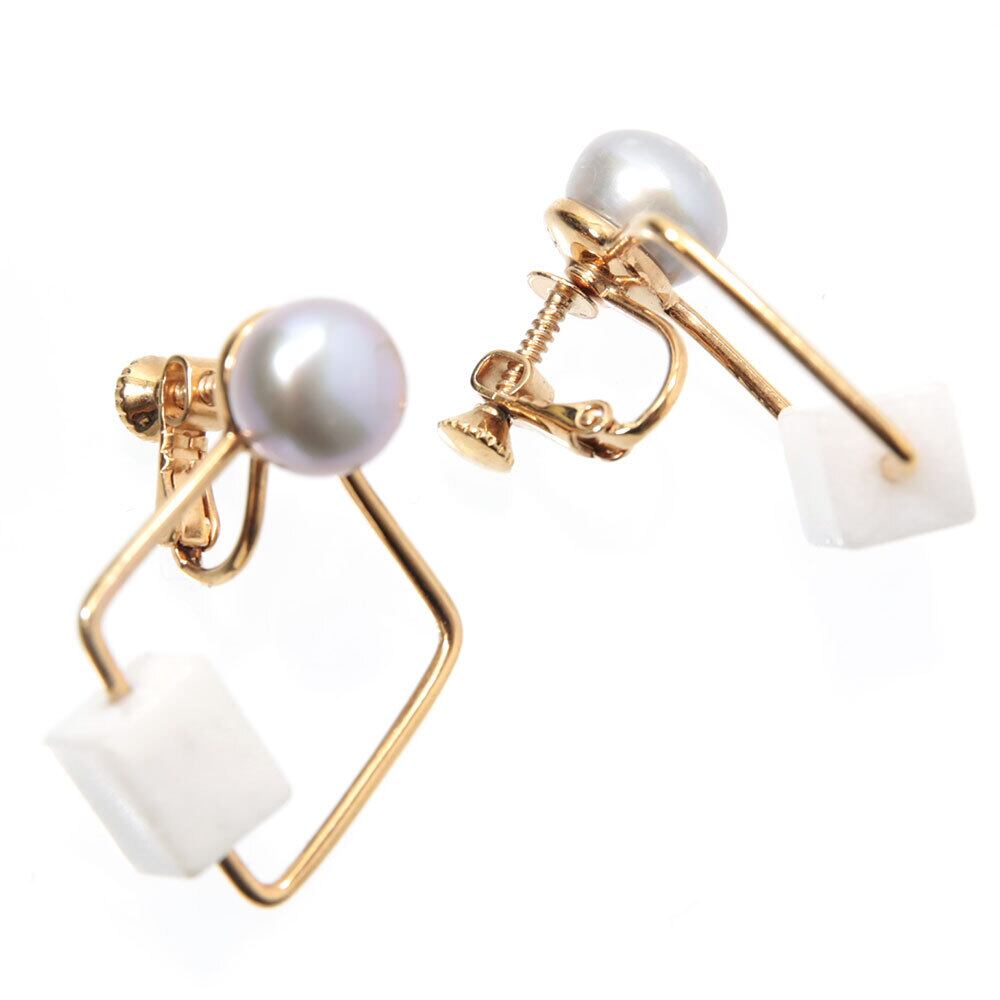 淡水パールの イヤリング カルサイト グレー ホワイト ゴールド キューブ ジオメトリック 150169 痛くなりにくい ニッケルフリー【イマック 公式】