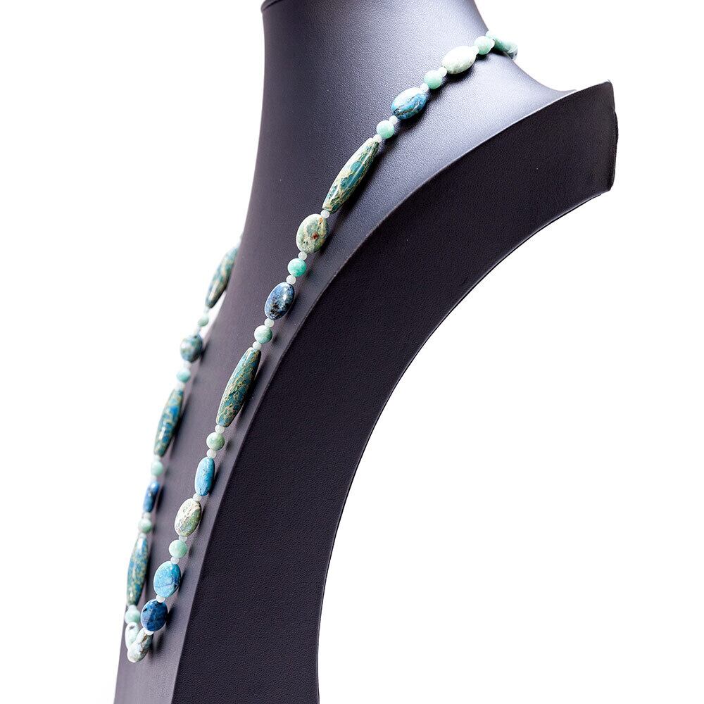 ネックレス 天然石 ジャスパー アマゾナイト オパール ブルー ロング 70cm 150972 【イマックジュエリー公式】