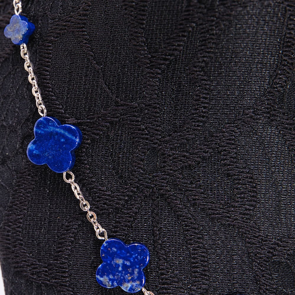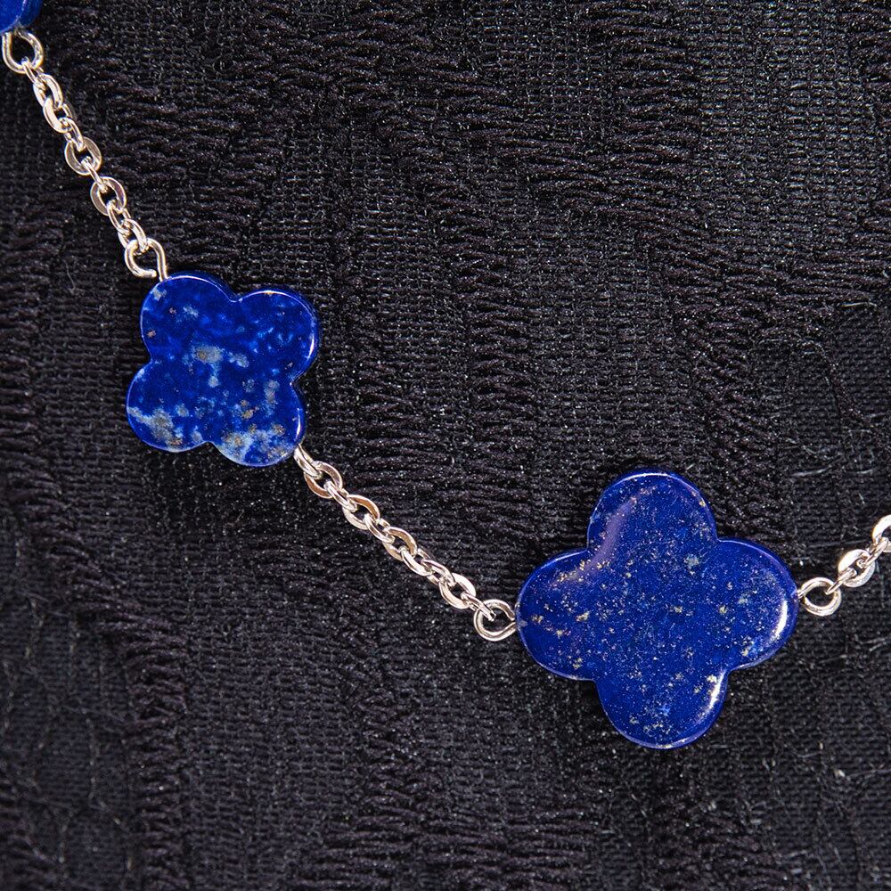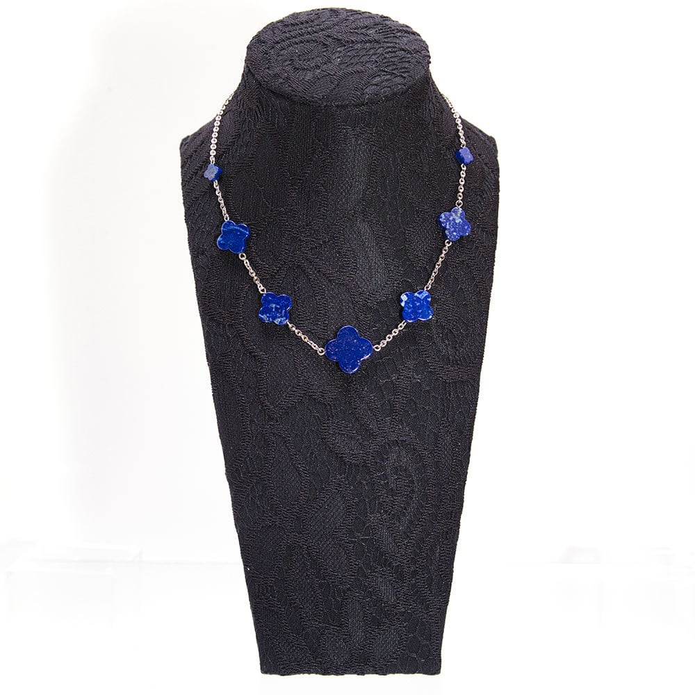 ロイヤルブルーが美しいラピスラズリのネックレス。 アクセサリーの伝統を受け継ぐベテラン職人による丁寧なハンドメイド。 フラワーモチーフのラピスラズリがデコルテを上品に彩ります。 お出かけやデイリーのおめかしにふさわしいネックレスです。